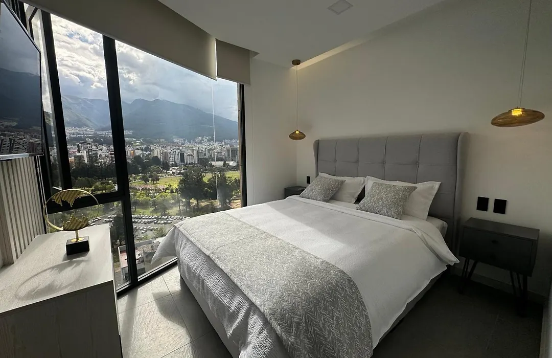 Guests can make use of the apartment self-catering amenities, including a kitchen, and enjoy their meals in a dining area. You will be just a few steps from the nearest bus stop - 6 de Diciembre Y Belgica. Maintain your exercise routine effortlessly at a rooftop fitness studio offered by the property. Nuevo Studio- Piso 17 Vista La Carolina - Edificio Harmony features a sun terrace, ensuring optimum comfort.
